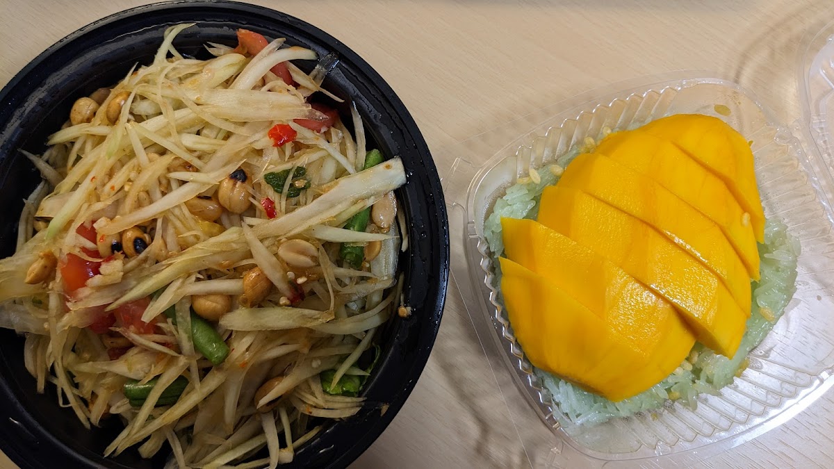For dessert, be sure to try their coconut sticky rice with mango. It’s the perfect way to end your meal, offering a sweet and creamy finish that complements the savory dishes you’ve enjoyed. The freshness of the mango paired with the rich coconut rice creates a perfect balance that will leave you fully satisfied.